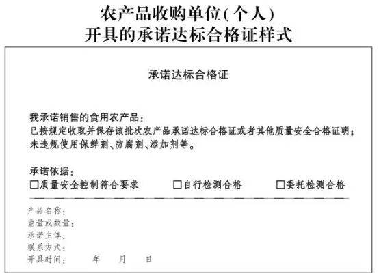 大师好!《农产质量量平安许诺达标及格证办理法子》将于2026年2月1日施行。现将食用农产物许诺达标及格证(以下简称许诺达标及格证)的开具和利用申明如下,请大师领会并遵照施行。许诺达标及格证是指农产物出产企业、农人专业合做社、农户和处置农产物收购的单元或者小我,按照质量平安节制、检测成果等依法开具,许诺其发卖的农产物未利用禁用农药、兽药及其他化合物且利用的常规农药、兽药残留不超标等的证明。2。保障平安:依托许诺达标及格现逃溯办理,有帮于提拔产物市场所作力和品牌价值。呈现问题时可快速溯源,让消费者买得安心,提拔消费决心。蔬菜(含人工种植的食用菌)、生果、茶鲜叶、畜禽、禽蛋、养殖水产物、农业农村部的其他农产物。农产物出产企业、农人专业合做社该当正在农产物产地按照出产批次开具许诺达标及格证。收购单元或者小我需按收取、保留许诺达标及格证;对收购产物进行混拆或者分拆后发卖的,需从头开具许诺达标及格证。激励和支撑农户发卖农产物时开具。可通过安徽省农产质量量平安聪慧监管平台“农安康”小法式开具电子许诺达标及格证;或可按照现实开具纸质许诺达标及格证(具体可参考附件格局),利用二联单模式,出产者或产地收购商开具记实至多保留六个月。包拆发卖:以发卖包拆为单元,一箱一证,以恰当体例固定正在包拆概况或放置正在包拆内,收购商向农产物出产企业、农人专业合做社收购农产物时,该当收取许诺达标及格证,采用摄影、留存原件、留存复印件或者扫码截屏等体例保留至多六个月。农产物出产企业、农人专业合做社不供给许诺达标及格证的,不得收购。单元或者小我对其收购的农产物进行混拆或者分拆后发卖的,检测成果开具许诺达标及格证并照实做好开具记实,开具记实该当至多保留六个月。进入批发、零售等食用农产物集中买卖市场的发卖者,应按收取、保留或开具许诺达标及格证;市场创办者该当成立健全农产物许诺达标及格证入场检验等轨制,检验并留存入场发卖者的许诺达标及格证。通过收集平台发卖农产物的,该当附具许诺达标及格证。按照法令,未按开具、收取或保留许诺达标及格证的,相关部分将先辈行教育并责令期限更正;过期不更正的,将处以100元以上1000元以下罚款。
