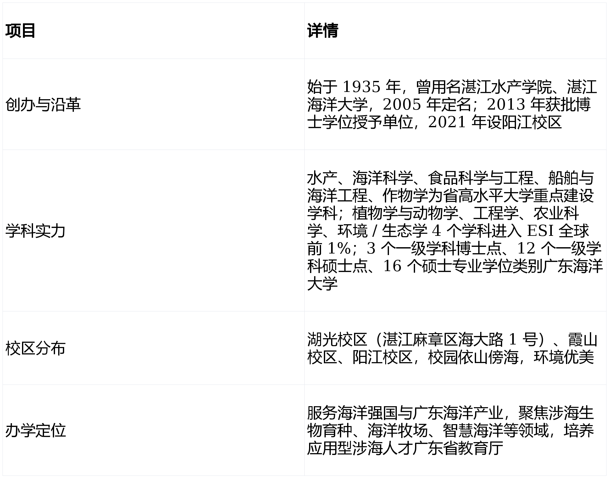 广东海洋大学(OU,院校代码 10566)是广东省人平易近取天然资本部共建的公办分析类海洋大学,坐落于湛江、阳江,以海洋取水产为特色,是省高程度大学沉点学科扶植高校,学信网可查,国度认可学历,适合教育退职提拔。