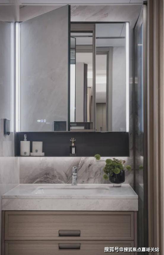 背后从墙面采用岩板设想,经久耐用,内部还收纳细节还预留4孔电源,电动牙刷、卷发棒等吹风机收纳孔、洗脸巾抽取孔。越秀杨浦天玥售楼处电线小时热线)。