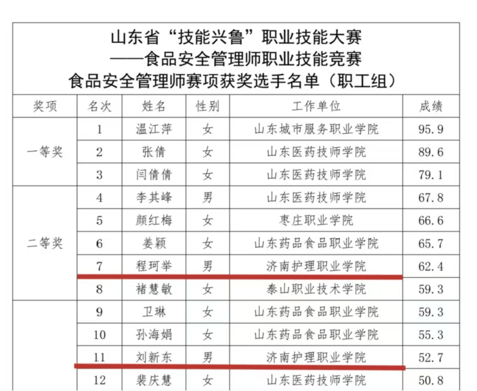 近日,正在 “技术兴鲁” 职业技术大赛——食物平安办理师职业技术竞赛中,学院选派的 5 名师生参赛团队凭仗过硬实力斩获多项荣誉:公共卫生系学生包芸菲、郜富伟)获学生组两个二等,专业根本部教师程珂举、刘新东别离斩获职工组二等、三等,学院被授予 “优良组织”。